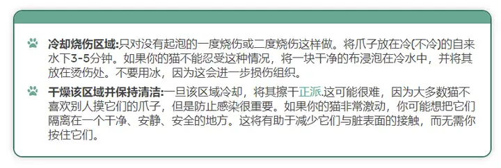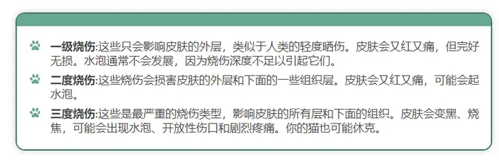 尽管爪子的表面积很小,但严重烧伤会导致猫休克、脱水或器官损伤。