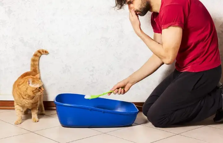 你可以通过定期更换猫砂和使用小苏打或猫砂除臭剂等除味剂来解决这个问题。一个窍门是在往干净的猫砂盆里装垃圾之前,在底部撒一层小苏打。然后,在垃圾上撒上小苏打,用垃圾勺搅拌。