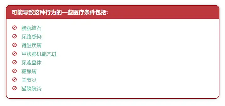如果你已经确定猫砂盒不是问题所在,或者你的猫看起来很痛苦或不舒服,或者表现出不舒服的症状,是时候带它们去看兽医了。