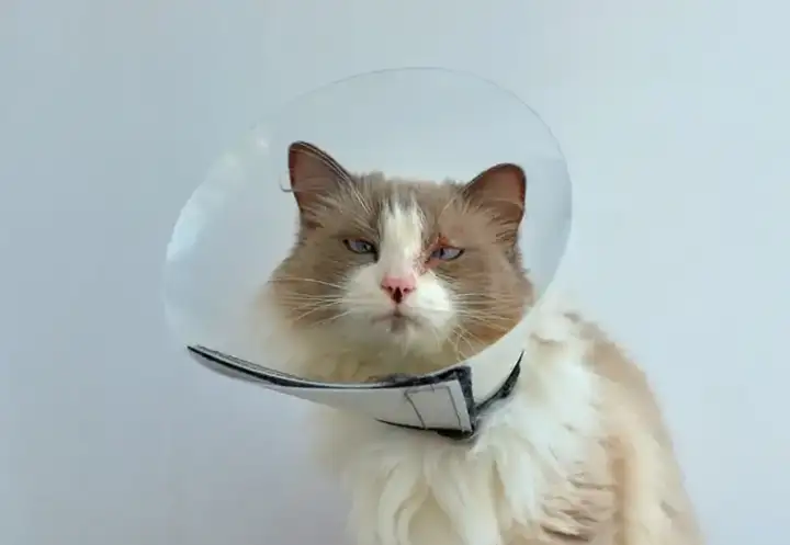 猫咪会因为脖圈的不舒服情绪变的焦躁不安,你可以给他准备 瑞乐事舒心点,通过熟悉气味安抚猫咪情绪,舒缓压力,辅助治愈。http://www.relaxivet.com.cn