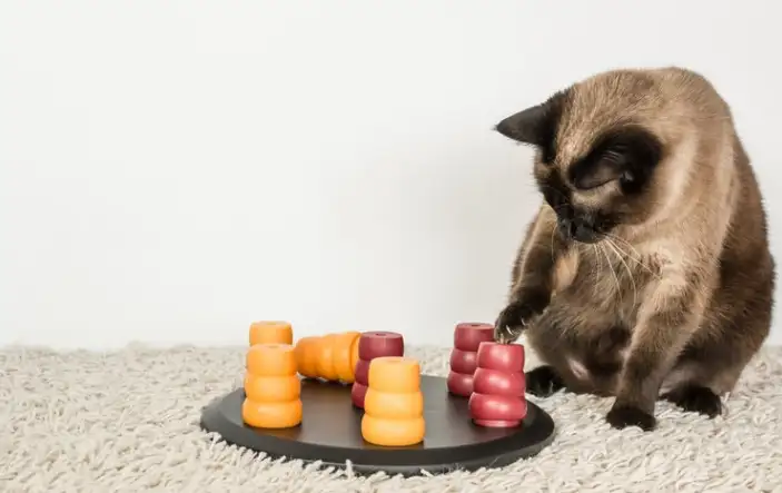 猫喜欢玩耍、狩猎和探险,就像它们喜欢打盹一样。当你不在的时候,他们需要一些东西来保持他们的兴趣,教他们新技能,刺激他们的大脑。确保你的猫有大量互动的一个好方法是在房子里准备一些像益智玩具这样的东西。